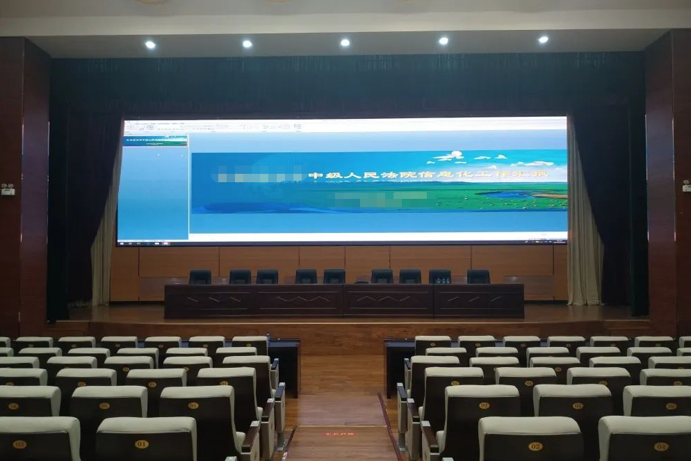 本項目案例是我公司(榮臻電子)在黑龍江某機關事務所安裝的一個P2.5小間距全彩顯示屏項目,項目的具體展示效果如下: